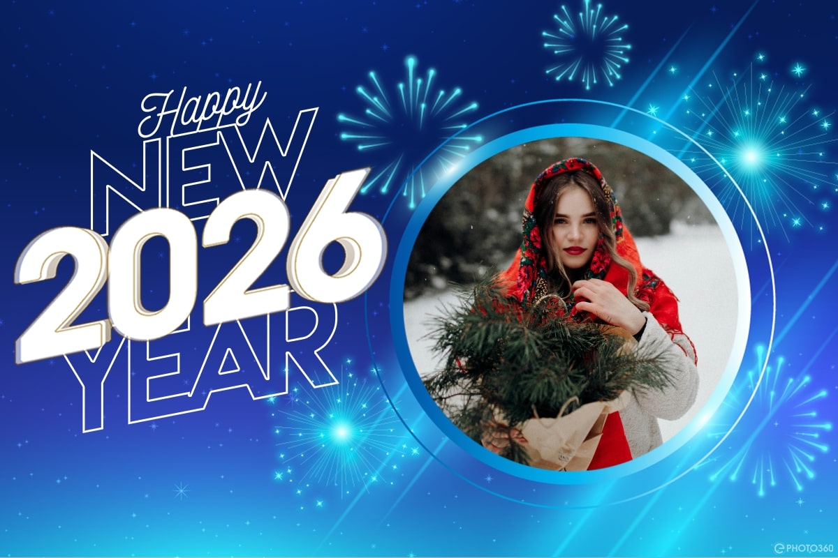 Another year has come! To immerse yourself in the bustling atmosphere, Ephoto360 sends you the New Year fireworks photo frame 2026 for social betwork or share with friends as a greeting card.
